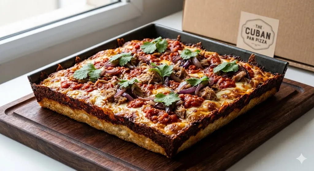 Molho cubano, mix de mussarela e parmesão, borda caramelizada